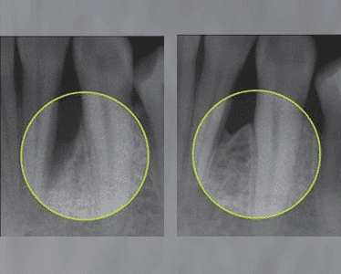 Often if periodontal disease (gum disease) is not treated in time it leads to the loss of material from the bone supporting the teeth. When the resulting bone defect is localised, we can treat it with Emdogain™ in an attempt to regenerate the bone and to recover the force supporting the teeth.