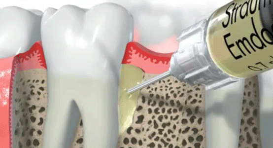 Emdogain™ is a derivative of enamel matrix proteins proven to help regenerate the tissues surrounding teeth (root cement, bone, and periodontal ligament).